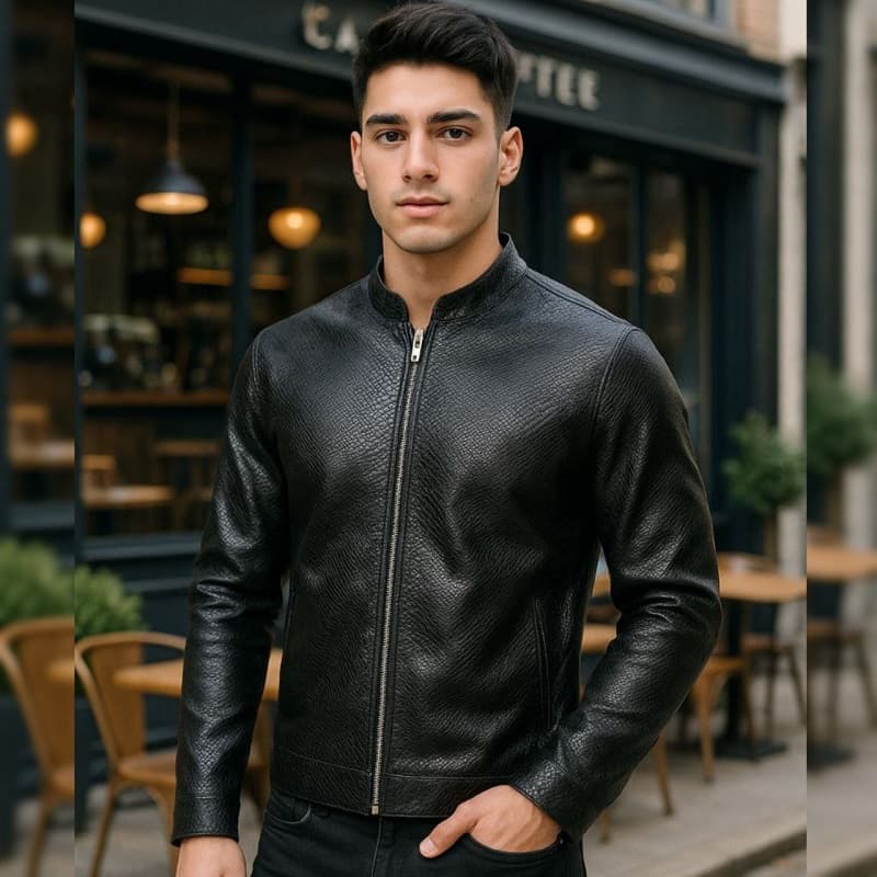 کاپشن چرم طرح پوست مار ساده مردانه مدل Yasan