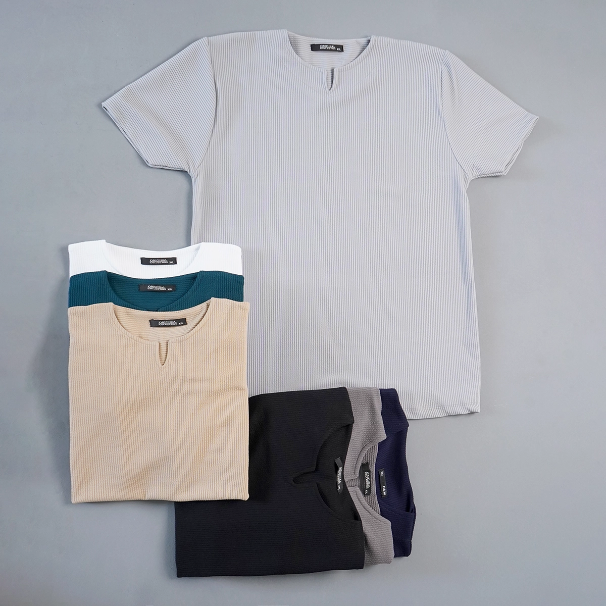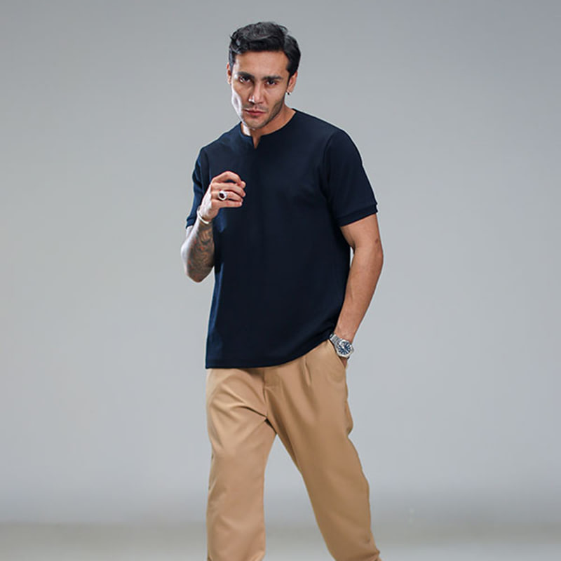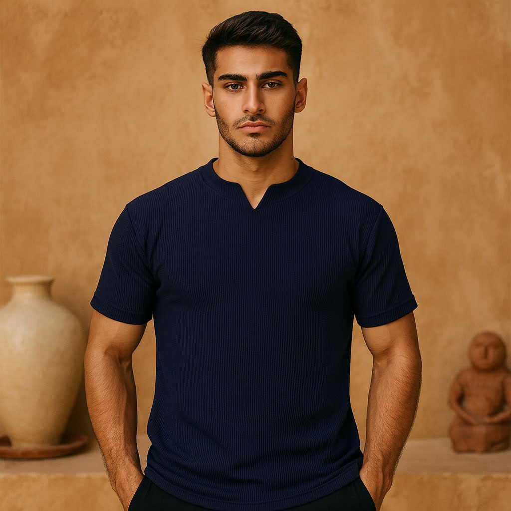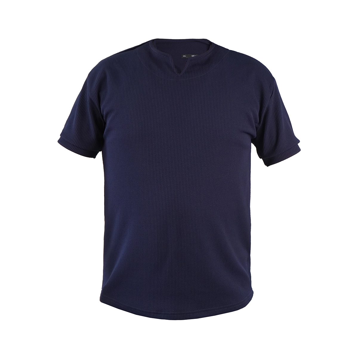 تیشرت آستین کوتاه یقه کوبایی سرمه ای مدل Asam